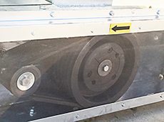 Trasmissione a cinghie tramite pulegge a 3 gole B per coclea diametro 200, 4 gole B per coclea diametro 250 e 6 gole B per coclea diametro 300 (dotazione Standard) oppure a 4 gole B per coclea diametro 200, 6 gole B per coclea diametro 250 e 300 (dotazione Premium).